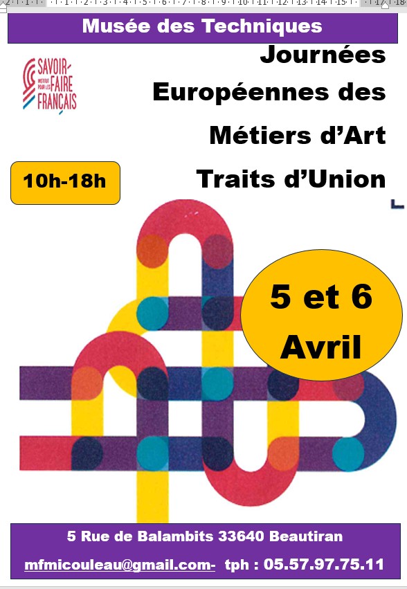 Journées européénnes des métiers dart Le Musée met à l’honneur l’Artisanat en participant à cette manifestation européenne.