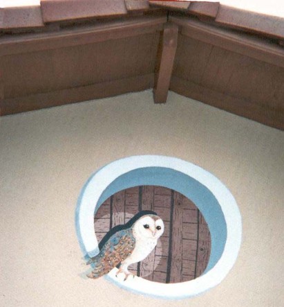 Bernadette Muraour, peintre – illustratrice, travaille sur tout format, sur des supports très divers : porcelaine, verre, bois, ardoise. Pratique de toutes les techniques : huile,acrylique, pastel gras, pastel sec, aquarelle,crayons de couleur, trompe l'oeil (ci-dessous) ;
