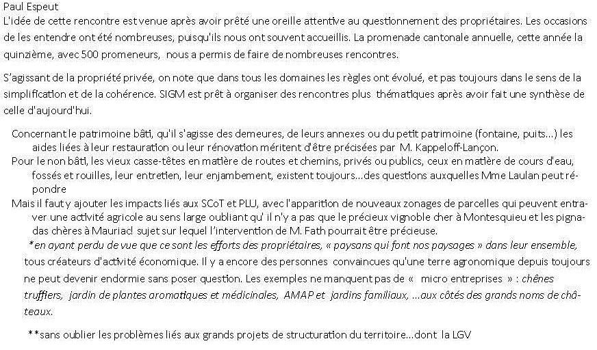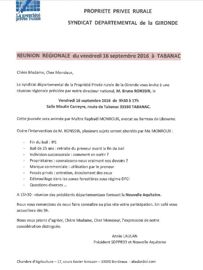 16 septembre 2016 réunion de PPR à Tabanac, Propriété Privée Rurale