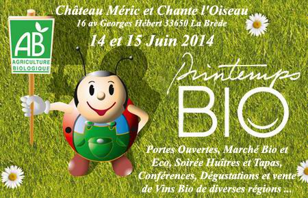 Fête du Printemps Bio au Château Méric et Chante l’Oiseau Les 14 et 15 Juin 2014 voir le site